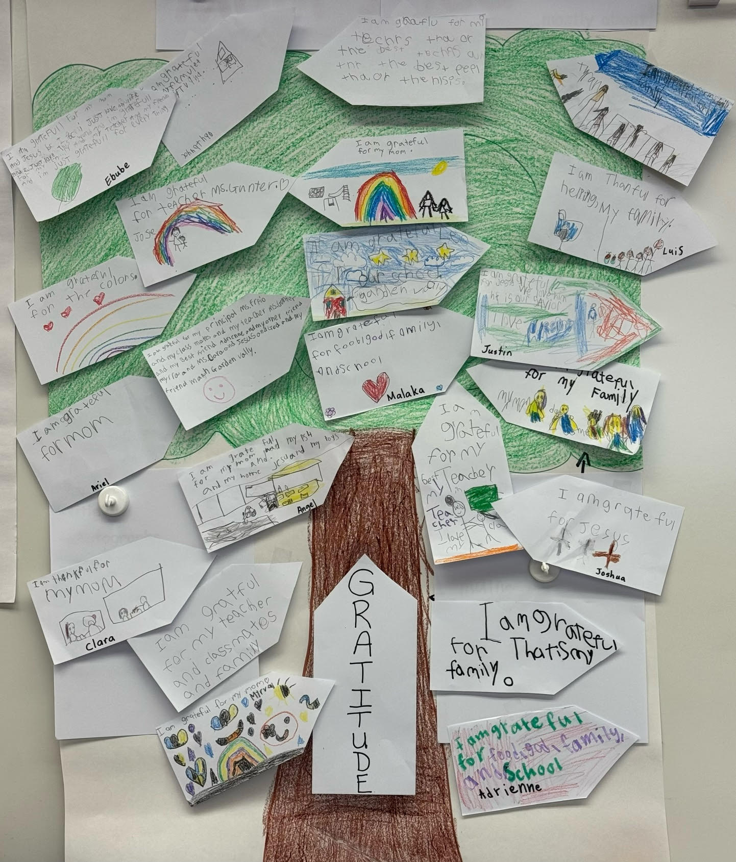 Set up a space in the classroom where students can post notes of gratitude. Encourage them to write about things they are thankful for and share them with the class.